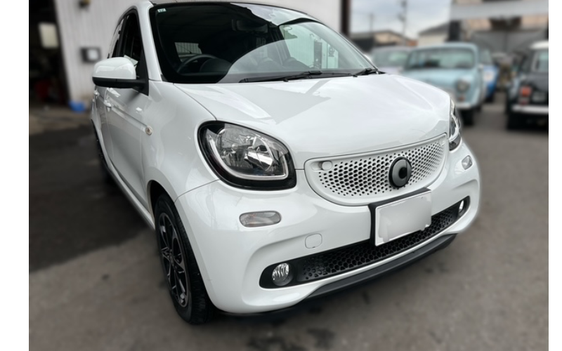 今ではもう新車で購入出来ないスマートフォーフォープライムの入庫です。ツインガラスルーフとなっており開放感がある1台となっております。また見た目通り小回りが利くので、セカンドカーにベストです。